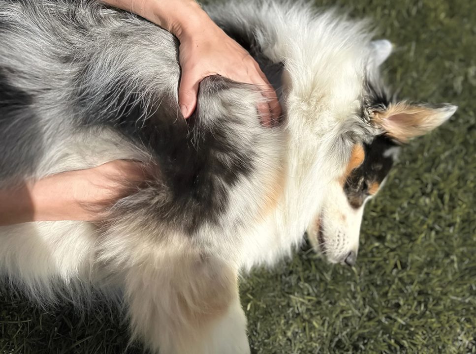 Ich behandele auf einer weichen Unterlage auf dem Boden. Idealerweise liegt eine hauseigene Decke oder Matte bereit, damit der Hund keinen fremden Gerüchen ausgesetzt ist und so mit der Umgebung vertraut ist. Sollte dies nicht möglich sein, bringe ich immer eine Matte mit. Damit Ihr Hund sich richtig auf die Behandlung einlassen kann, würde ich Sie darum bitten, zuvor eine kleine Runde mit ihm spazieren zu gehen. So ist es für das Tier einfacher, sich zu entspannen.